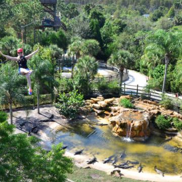 Desfrute de um autêntico churrasco da Flórida, incluindo cauda de jacaré e pernas de rã